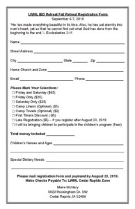 LWML Invitation Fall Retreat Registration